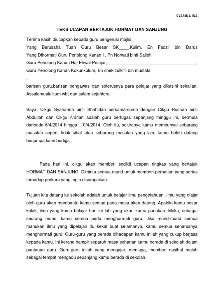 Teks ucapan pengerusi majlis contoh p s. Contoh ucapan perpisahan kerja lertyi. Mohd bulan kemerdekaan 2015 maidin.